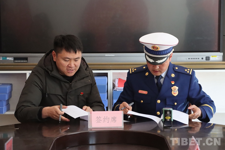 圖為(wei) 察隅縣森林消防中隊與(yu) 察隅縣中學舉(ju) 行黨(dang) 支部共建簽約儀(yi) 式