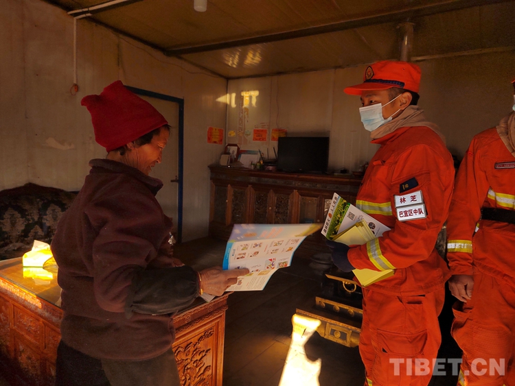 圖為(wei) 巴宜區中隊指戰員入戶為(wei) 駐地群眾(zhong) 普及防火知識