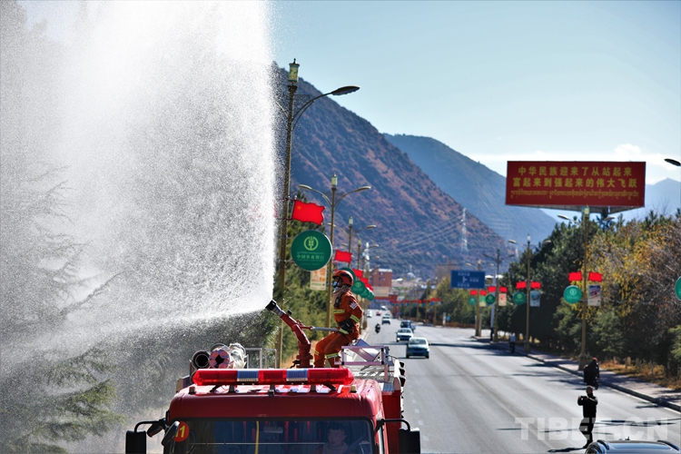 圖為(wei) 巴宜區中隊指戰員運用消防車對道路沿線雜草、枯樹進行灑水增濕作業(ye) ,有效降低重點區域、道路周邊的火災風險