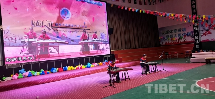 圖為(wei) 薩迦縣中學古箏社成員在展示才藝