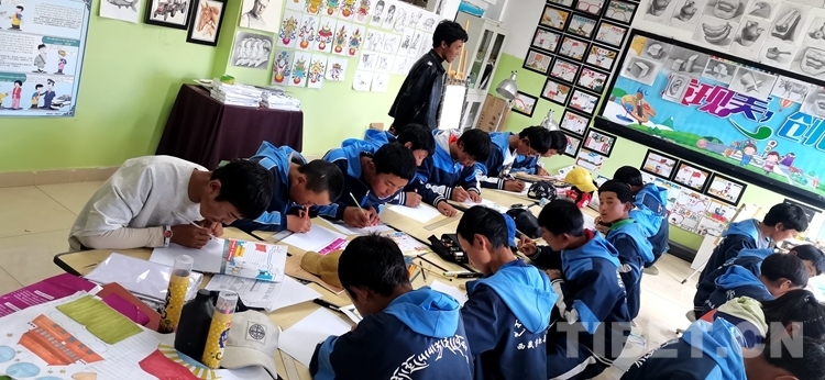 圖為(wei) 薩迦縣中學美術社在上課
