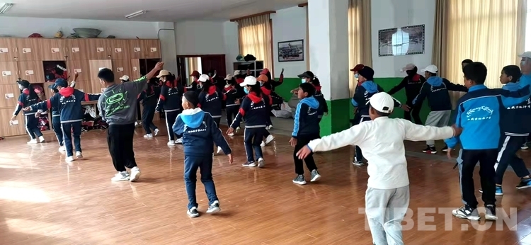 圖為(wei) 薩迦縣中學舞蹈社在練習(xi) 薩迦索舞