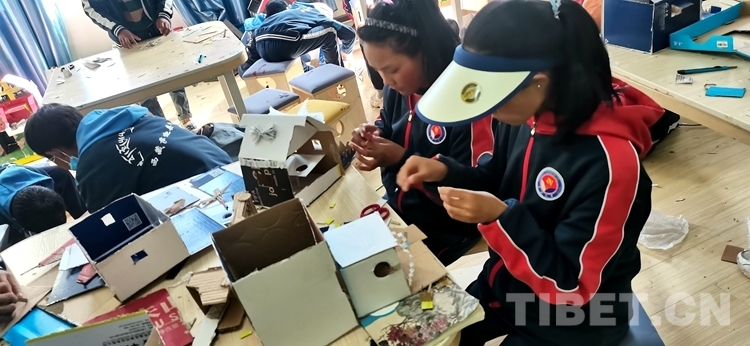 圖為(wei) 薩迦縣中學手工剪紙社學生在完成自己的作品