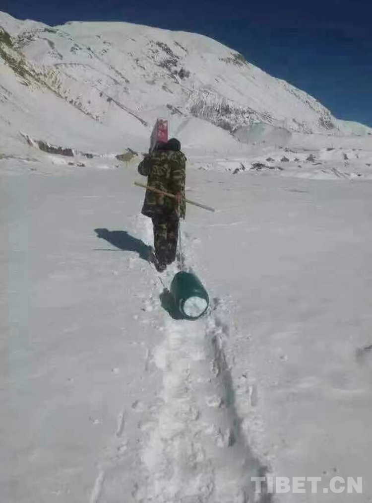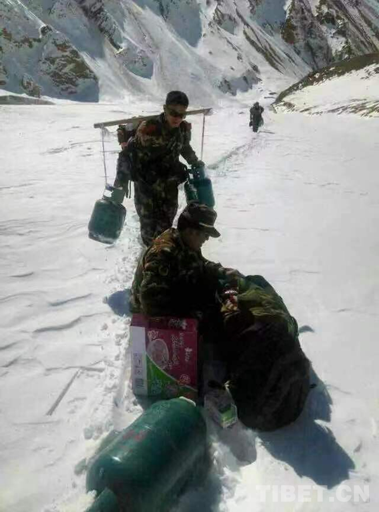 圖為(wei) 尼瑪國傑與(yu) 戰友一起輸送補給物資回執勤點路上