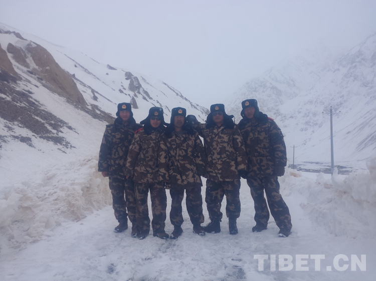 圖為(wei) 尼瑪國傑(右一)與(yu) 執勤點駐點戰友合影