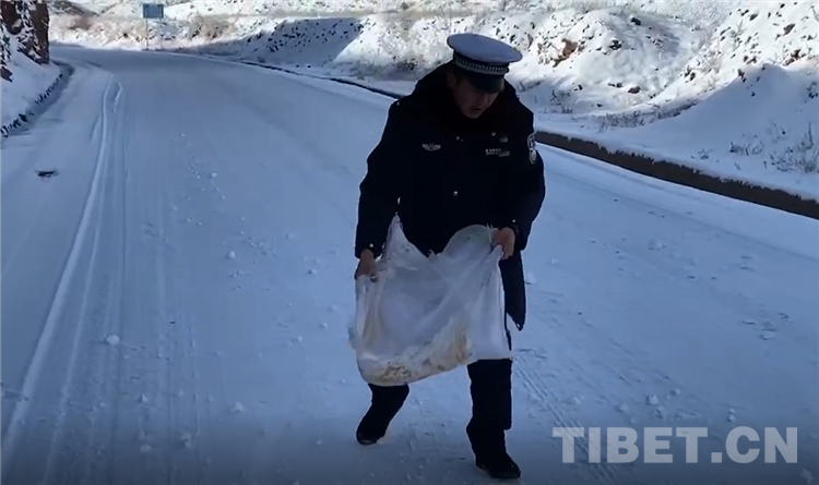 2018年3月,國道317突然遭遇了暴雪天氣,許多群眾(zhong) 和車輛被困在了矮拉山山頂,紮西四郎跟著隊友們(men) 在零下三十多度的惡劣環境下堅守了28天。令紮西四郎印象最深刻的是有一次,因為(wei) 車子沒辦法通行,隊長指揮民警帶群眾(zhong) 下山。當時,有一位要去拉薩的老奶奶腿腳不方便,她自己根本就沒辦法走動,紮西四郎就和桑珠一起輪流背著老人下山,雖然中間滑倒了幾次,可還是把老人背到了能通車的安全位置,老人為(wei) 了表達感激,還專(zhuan) 門給他們(men) 留下了拉薩的住址和聯係電話。