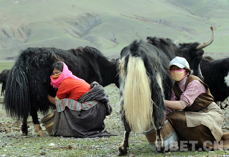 這是那曲地區(現那曲市)申紮縣申紮鎮三村牧女正在擠犛牛奶(唐召明2009年攝)