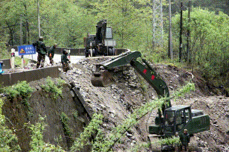 圖為(wei) 路途中遇到清障、維護工作 攝影:李元梅 王茜
