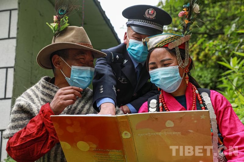圖為(wei) 陳塘邊境派出所民警給夏爾巴群眾(zhong) 宣講政策