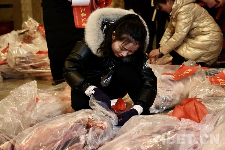 圖為(wei) 工作人員將物資打包,準備裝車 攝影:普索朗