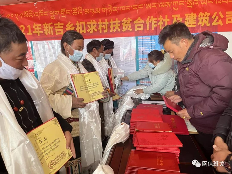 圖為(wei) 西藏自治區那曲市班戈縣新吉鄉(xiang) 扣求村扶貧合作社及建築公司2021年度分紅大會(hui)