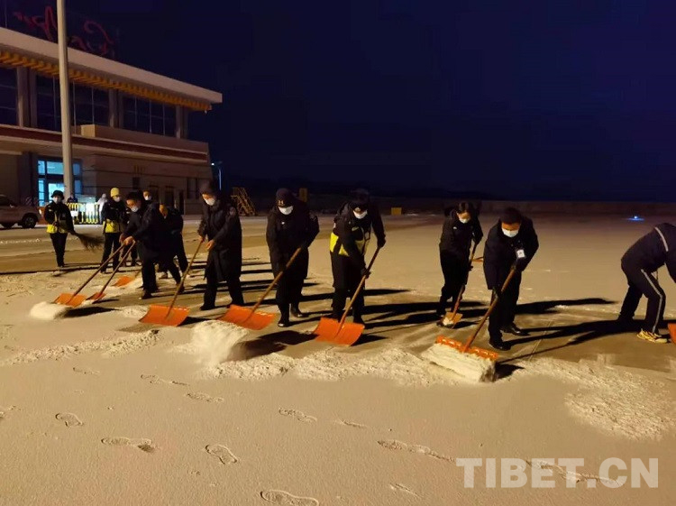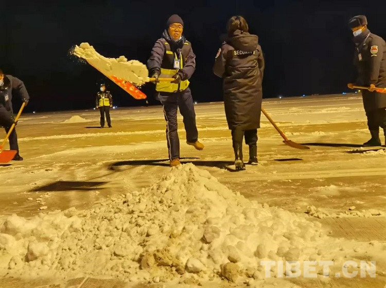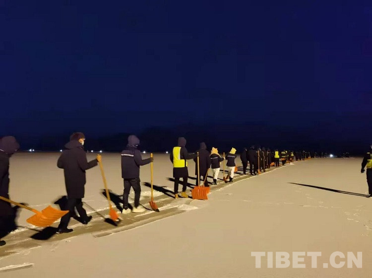 日喀則航站工作人員正在進行掃雪作業(ye)