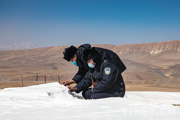 吃過午飯,民警嘎色和輔警普瓊穿上警服大衣,戴上手套、耳罩和大棉帽,全副武裝,準備去海拔5200多米的開魯拉山口執勤點,那裏的風能把石頭吹跑,也能把帳篷吹飛。