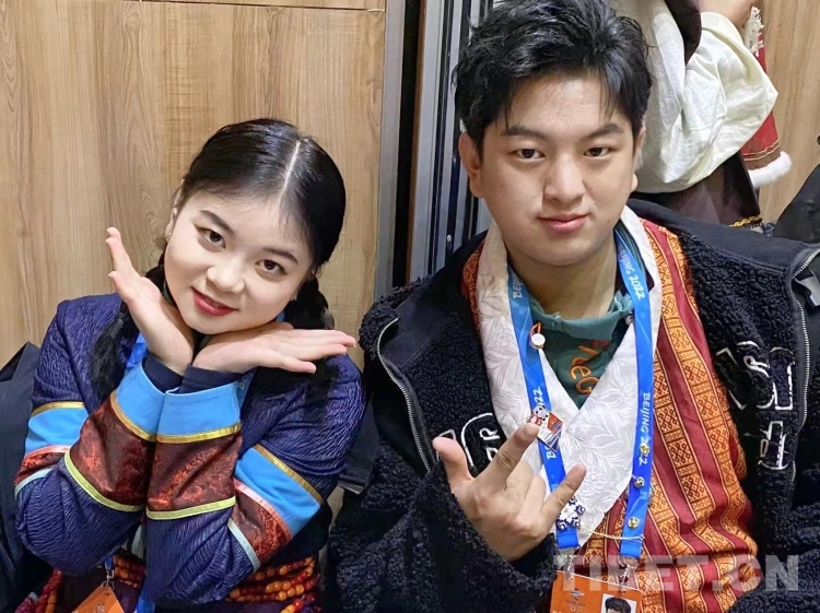 圖為(wei) 參加北京冬奧會(hui) 開幕式表演的珞巴族青年索朗卓瑪和門巴族青年多吉次旦 受訪者供圖