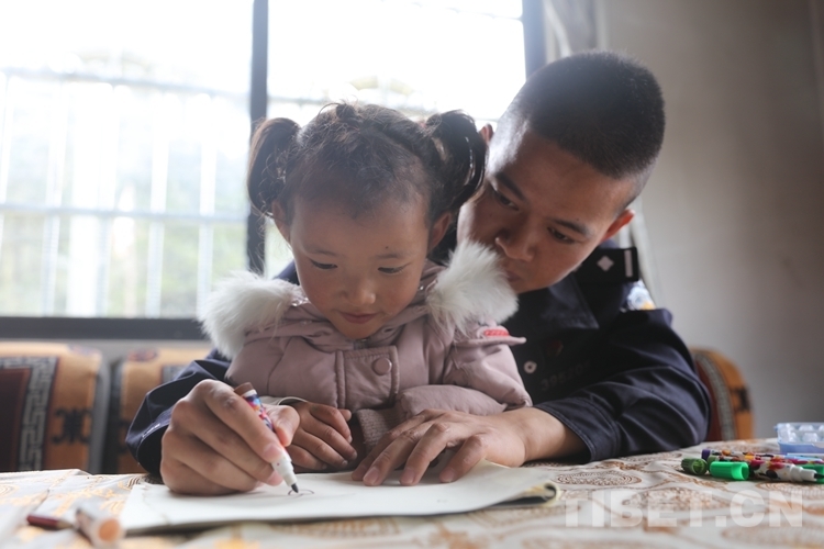 7歲女孩白瑪旺姆,是西藏林芝市米林縣南伊鄉(xiang) 瓊林村紮西達瓦的孫女,於(yu) 2020年1月從(cong) 三岩地區搬遷過來,由於(yu) 天生視力殘疾,不能完全看清物體(ti) ,邊境派出所民警了解到情況後,每次走訪中,他們(men) 都要教小旺姆學拚音、認漢字,鼓勵她積極讀書(shu) 學習(xi) 。