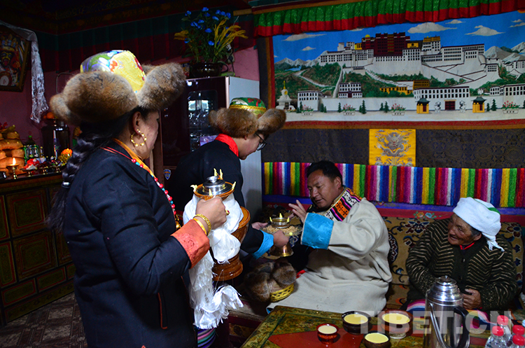 圖為(wei) 初一的早上,一家人一起喝青稞酒 攝影:歐帆