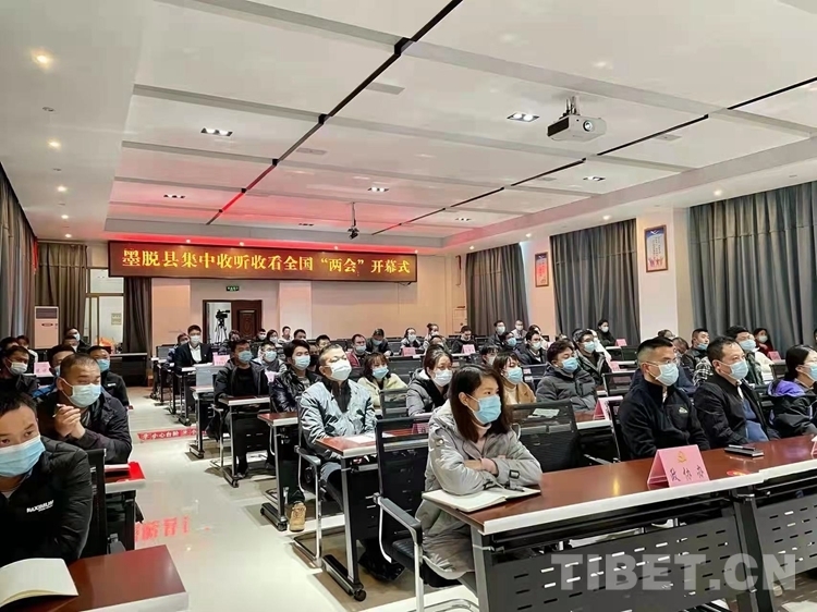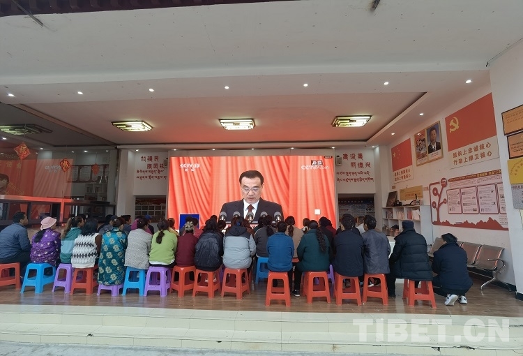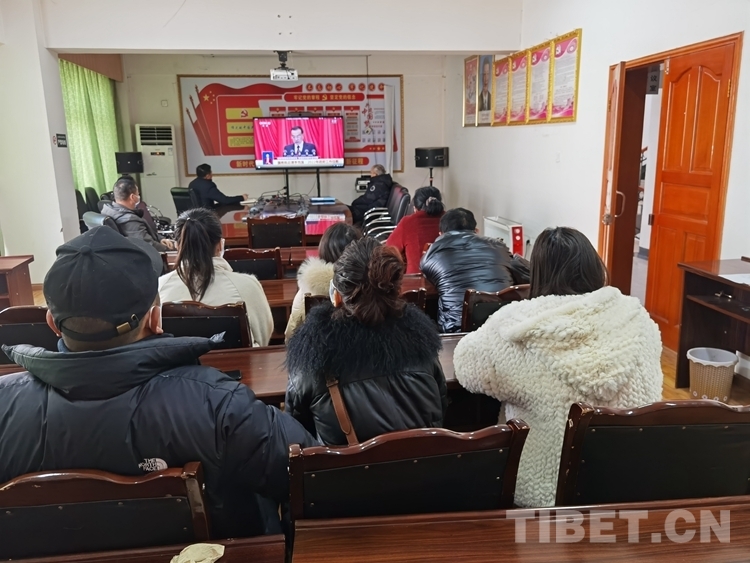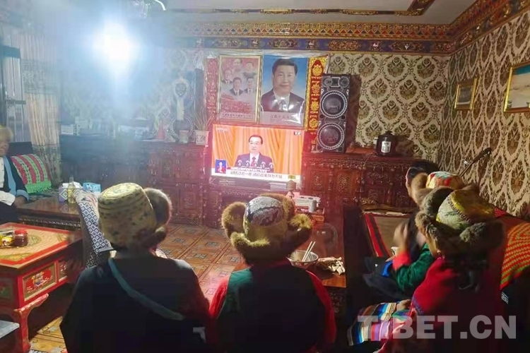 圖為(wei) 西藏各地幹部群眾(zhong) 收聽收看十三屆全國人大五次會(hui) 議開幕會(hui)