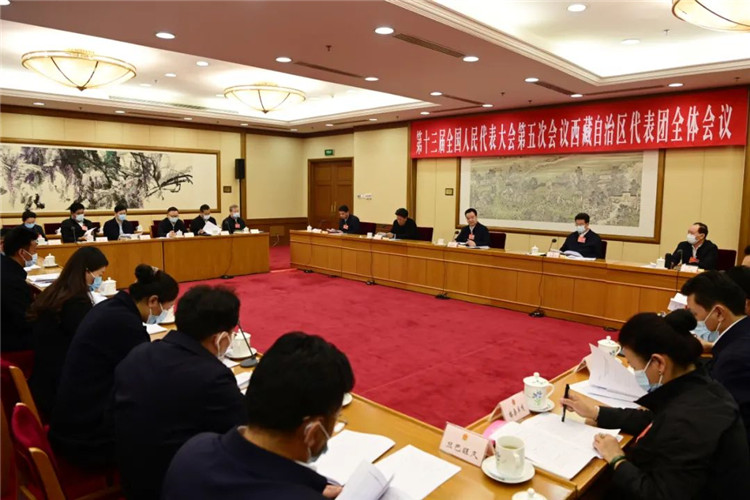 圖為(wei) 3月3日下午,十三屆全國人大五次會(hui) 議西藏自治區代表團召開第一次全體(ti) 會(hui) 議。旦增西旦 攝