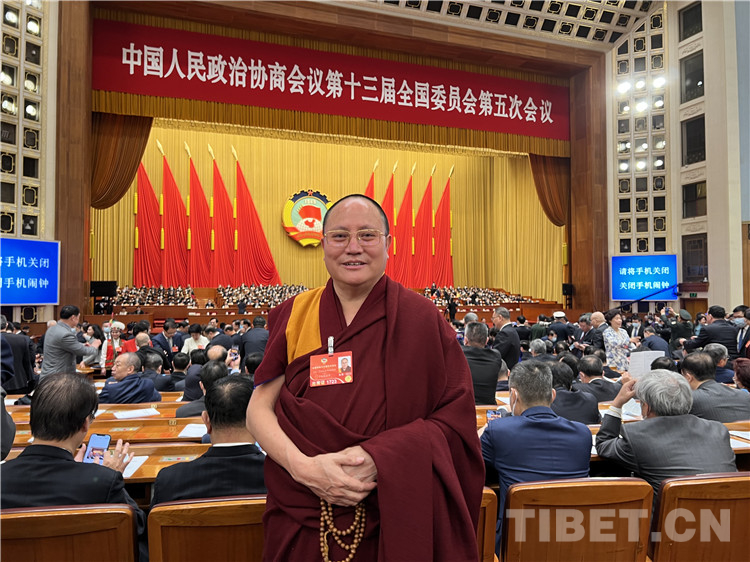 圖為(wei) 全國政協委員、四川省阿壩州人大常委會(hui) 副主任達紮·尕讓托布旦拉西降措