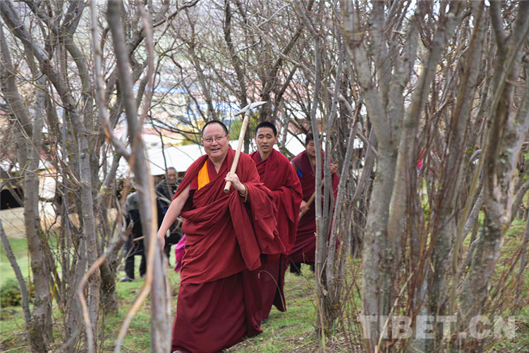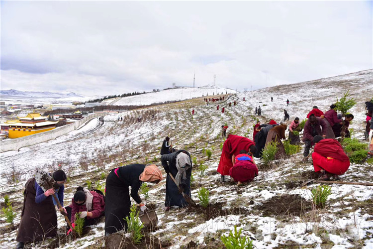 圖為(wei) 達紮委員帶領達紮寺僧人和當地群眾(zhong) 植樹造林