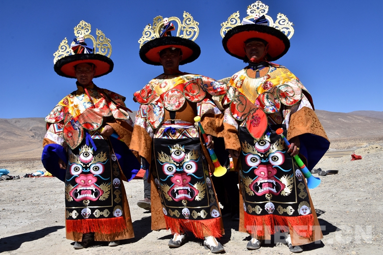 圖為(wei) 曲堆藏戲隊隊員身著跳神服(跳神環節也是曲堆藏戲的特色)攝影:拉姆