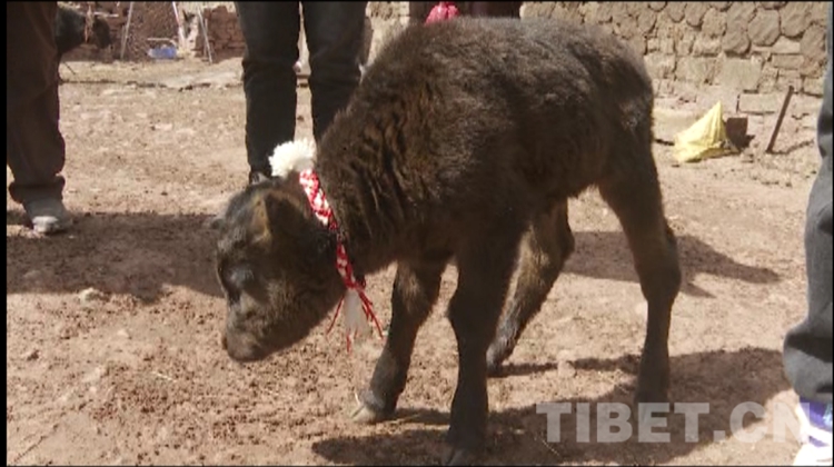 圖為(wei) 貢覺縣2021年犛牛經濟雜交後代首胎“雅江雪牛一號”