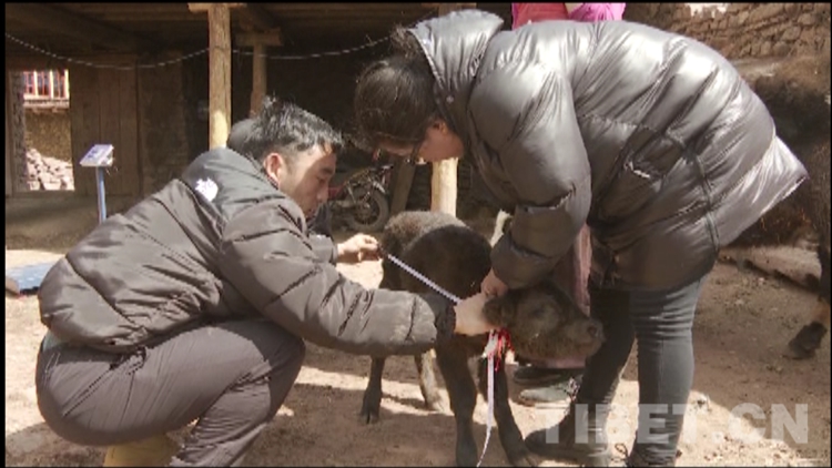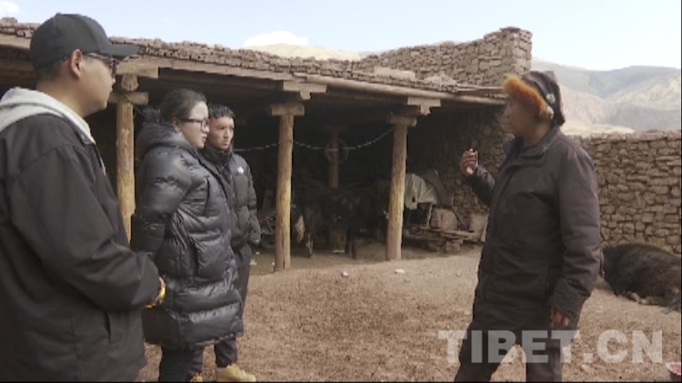 圖為(wei) 貢覺縣畜牧站工作人員給村民索朗桑布指導飼養(yang) 保暖措施