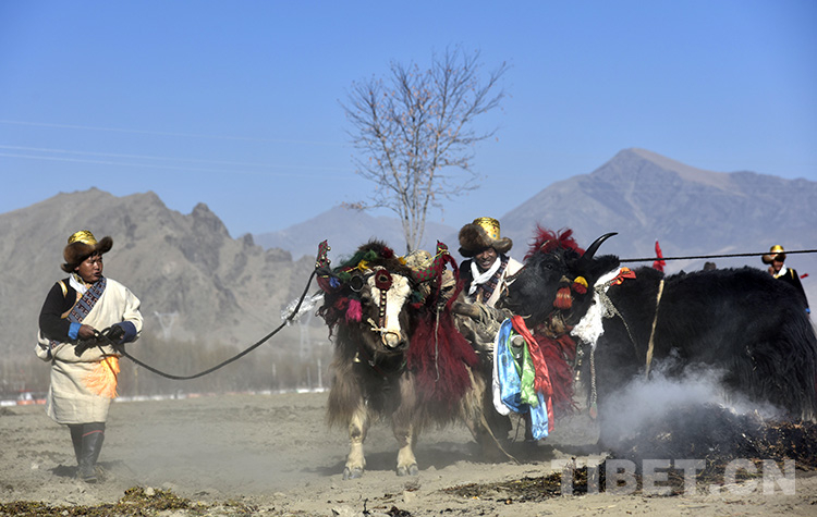 十點左右,男人們(men) 牽著犛牛走向田間。一人或兩(liang) 人牽牛、一人掌犁,這是傳(chuan) 統的耕作方式 “二牛抬杠”。犛牛前行,土地翻出新色,習(xi) 俗得以傳(chuan) 承。