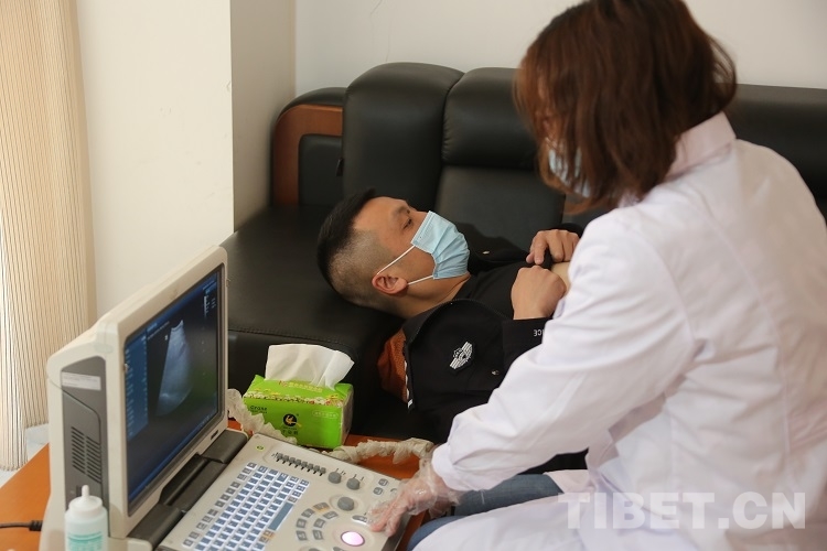 圖為(wei) 醫生為(wei) 拉薩邊檢站民警體(ti) 檢 攝影:王佳豪