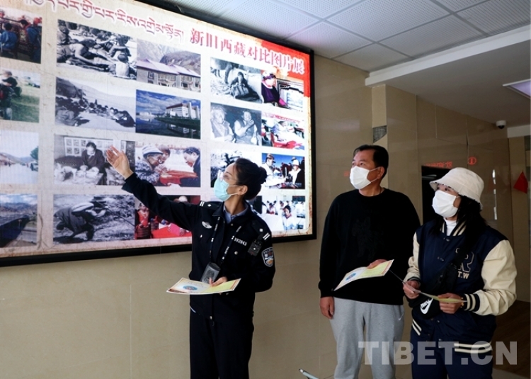 圖為(wei) 辦證室民警講解新舊西藏對比圖 攝影:仁青旺堆