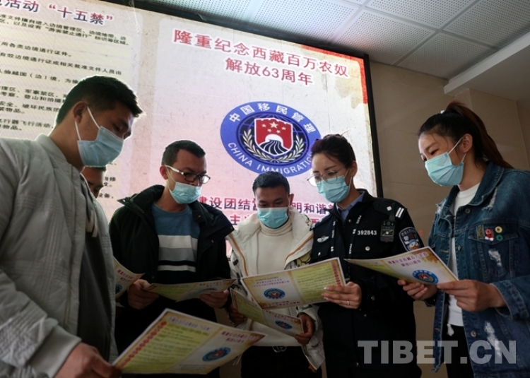 在西藏出入境邊防檢查總站執法調查支隊辦證大廳,辦證室民警結合辦證室群眾(zhong) 多、人流量大的實際,開展以“攜手法律宣傳(chuan) ,共建平安邊境”為(wei) 主題的宣傳(chuan) 活動。通過懸掛宣傳(chuan) 標語、設置新舊西藏對比圖片專(zhuan) 欄、發放“新舊西藏對比圖及涉邊法律法規”為(wei) 主題的宣傳(chuan) 單等多種渠道,講解西藏百萬(wan) 農(nong) 奴翻身得解放的曆史背景,讓更多遊客群眾(zhong) 了解西藏民主改革以來波瀾壯闊的發展史和翻天覆地的新變化,銘記隻有中國共產(chan) 黨(dang) 才能領導西藏各族群眾(zhong) 過上幸福美好的生活。