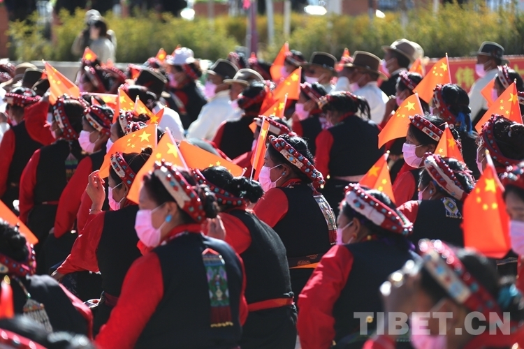 上午10時30分,伴隨著歌舞《歌頌幸福》,慶祝西藏百萬(wan) 農(nong) 奴解放63周年專(zhuan) 場文藝演出拉開帷幕。《毛主席派人來》《逛新城》《翻身農(nong) 奴把歌唱》《新舊對比》等節目在現場掀起一個(ge) 又一個(ge) 高潮。舞台下,滿是身著盛裝的各族群眾(zhong) ,不斷揮舞著手中的五星紅旗,臉上綻放著感動和幸福的笑容。