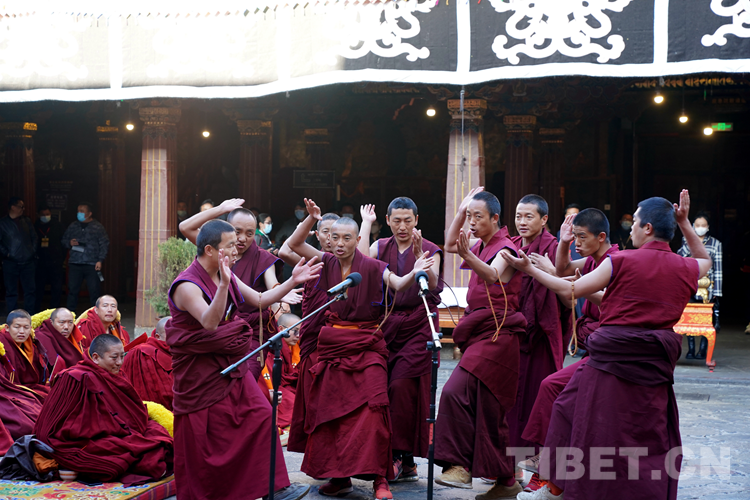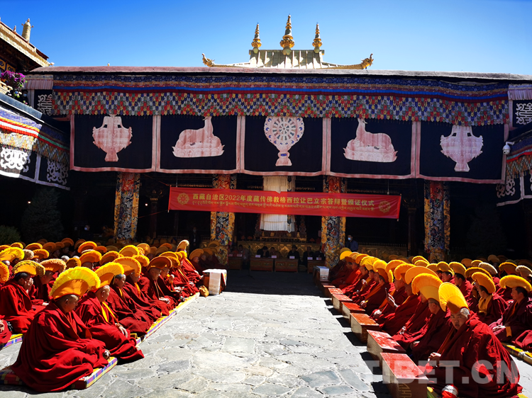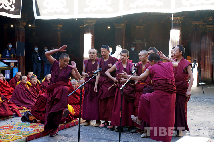 圖為(wei) 西藏自治區2022年度藏傳(chuan) 佛教學經僧人考核晉升格西拉讓巴學位立宗答辯暨頒證儀(yi) 式現場 攝影:王淑