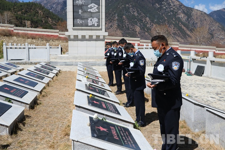 圖為(wei) 察隅邊境管理大隊組織民警參觀烈士紀念館