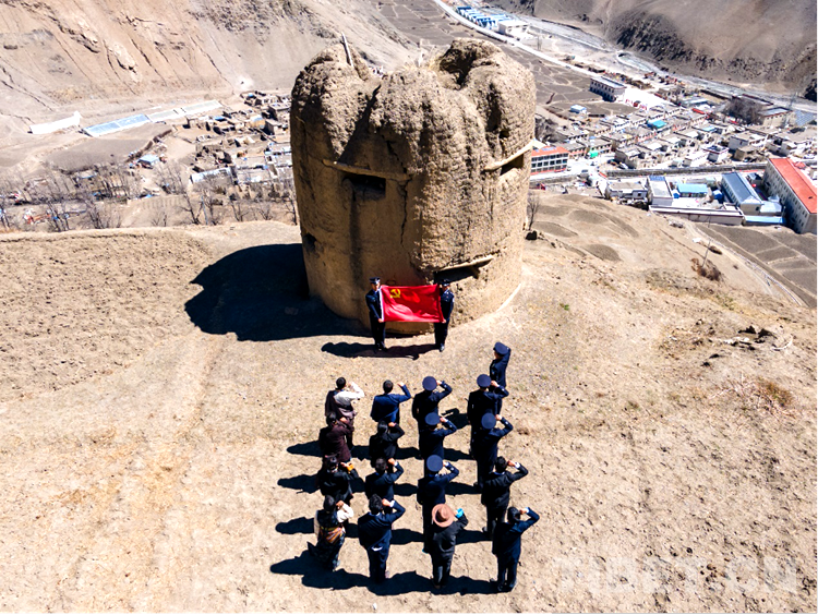 吉隆邊境管理大隊組織民警前往縣烈士陵園,在神聖莊嚴(yan) 的烈士紀念碑前莊重肅立,向長眠在此的76名烈士敬禮、默哀,全體(ti) 黨(dang) 員民警麵向紀念碑,在革命烈士見證下重溫入黨(dang) 誓詞,堅定獻身邊疆、矢誌衛國的初心使命。貢當邊境派出所聯合貢當鄉(xiang) 政府工作人員登上山嶺,來到紅色碉堡遺址前,認真傾(qing) 聽轄區老黨(dang) 員講述解放軍(jun) 同西藏各族人民肝膽相照與(yu) 敵對勢力進行艱苦卓絕鬥爭(zheng) 最終走向勝利的光輝事跡。