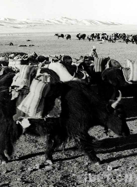 馱牛和馱羊,與(yu) 茶馬古道中佩戴著銅鈴的驢馬一樣,曾在藏北高原扮演著重要的角色。用牛羊馱運鹽、青稞、茶葉等生活必需品,過去是牧民日常生活的重要組成部分。