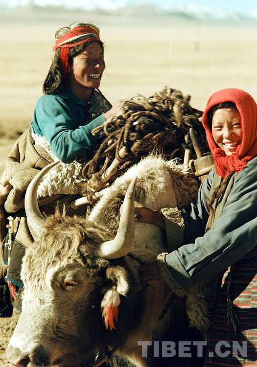 這是藏北高原一家使用犛牛馱物搬家、轉移草場的牧民人家(唐召明1991年攝)