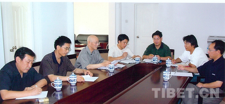 圖為(wei) 陳慶英先生(左3)主持中國藏學研究中心曆史研究所會(hui) 議,討論《西藏通史》相關(guan) 工作 (圖片由張雲(yun) 提供)