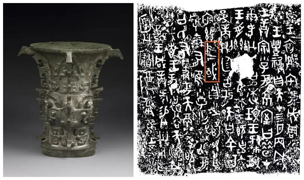 圖左為(wei) 出土於(yu) 陝西寶雞的西周早期青銅器、中國首批禁止出國(境)展覽文物、國家一級文物——何尊;圖右為(wei) 何尊內(nei) 底鑄銘文“中國”一詞。這是“中國”一詞最早的出土見證。 圖片來源:寶雞青銅器博物院