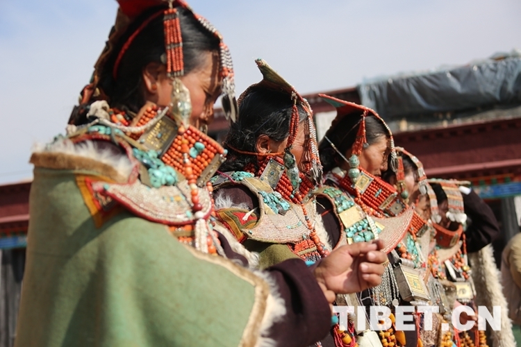 圖為(wei) 普蘭(lan) 縣群眾(zhong) 穿著傳(chuan) 統“飛天”服飾表演普蘭(lan) “宣”舞 攝影:王佳豪