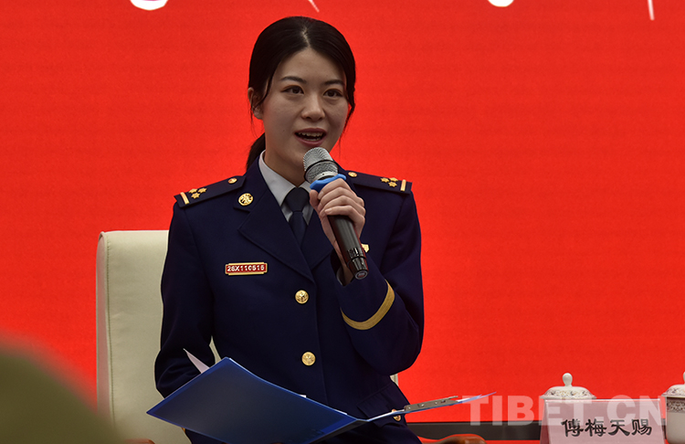 圖為(wei) 拉薩市消防救援支隊布達拉宮消防救援站指導員傅梅天賜現場發言 攝影:王媛媛