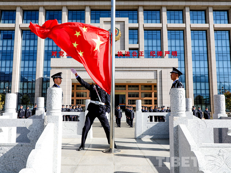 在林芝支隊機關(guan) 大樓前,鮮豔的五星紅旗在雄壯的國歌聲中冉冉升起,機關(guan) 全體(ti) 民警警容嚴(yan) 整、精神飽滿,用標準的敬禮向國旗致敬,向偉(wei) 大的祖國和勞動人民致敬。