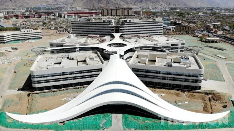 新利平台訊 挖掘機的轟鳴聲、鋼管的碰撞聲,走進西藏自治區醫院項目施工現場,一派忙碌的景象。從(cong) 空中俯瞰,建設中的西藏自治區醫院外形宛如一朵格桑花,目前正進行室內(nei) 裝修和機電安裝。
