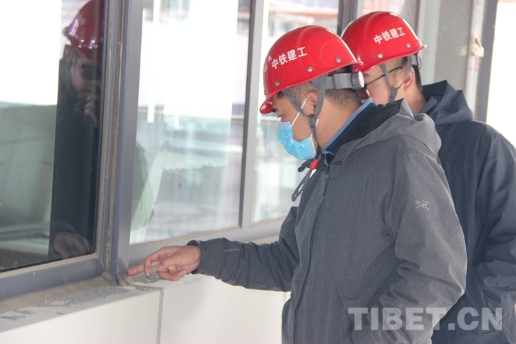 圖為(wei) 張磊(右二)帶領施工人員在西藏自治區醫院項目施工開展現場檢查