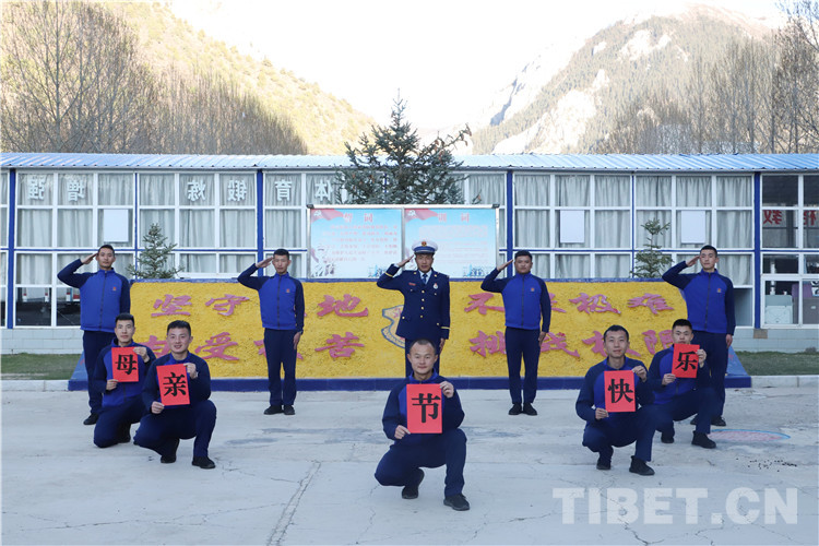 圖為(wei) 昌都市森林消防支隊左貢中隊消防員送上母親(qin) 節節日祝福