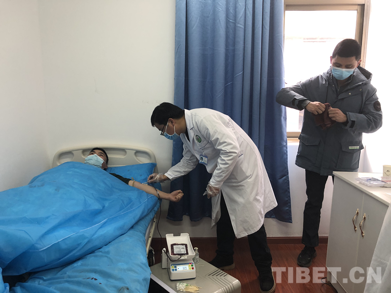 圖為(wei) 洛隆縣武警支隊官兵為(wei) 患者緊急獻血