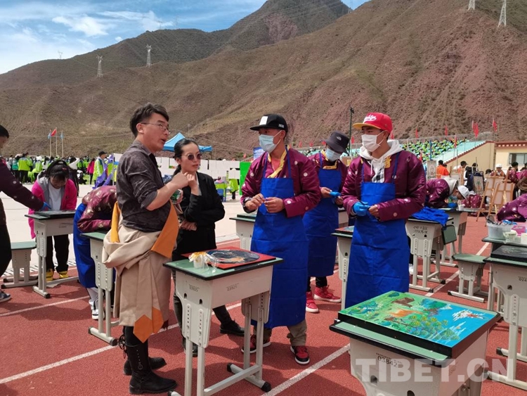 圖為(wei) 紮西格勒老師教授唐卡漆畫專(zhuan) 業(ye) 同學作畫