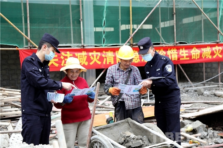 圖為(wei) 民警為(wei) 駐地工人宣講防範自然災害知識 攝影:鄒興(xing) 國