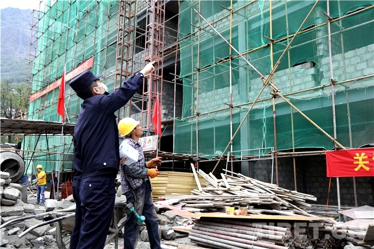 圖為(wei) 民警在施工現場為(wei) 群眾(zhong) 講解施工安全注意事項 攝影:鄒興(xing) 國