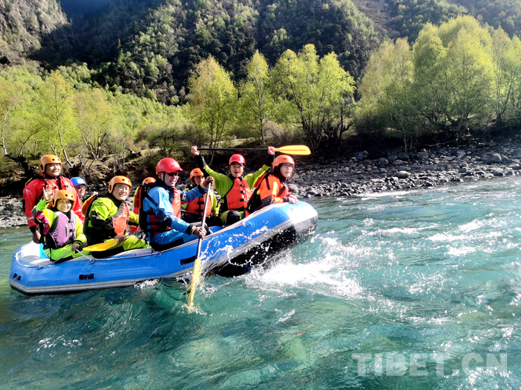 圖為(wei) 遊客在林芝巴河體(ti) 驗漂流 攝影:王淑